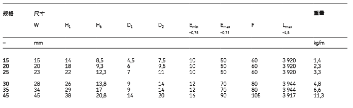 标准导轨类型用于从上方安装,配有保护性塑料孔塞以盖住安装螺钉。所有导轨带有两个基准端面。